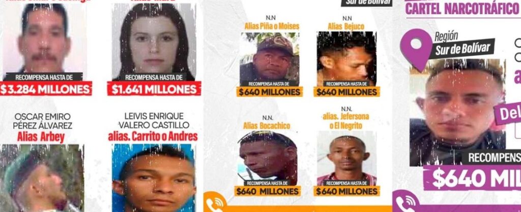 Gobierno ofrece $10.400 millones de recompensa por los nueve más buscados en el sur de Bolívar