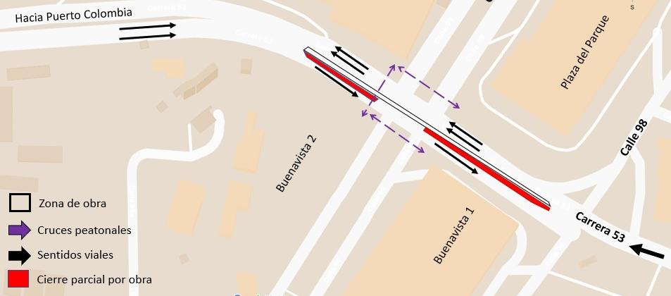 - Carrera 53 (calzada sur): entre calles 98 y 100, desde el 6 hasta el 22 de octubre.
